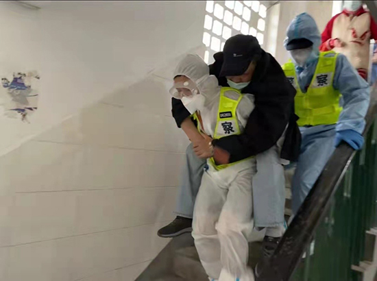 “能不能幫幫我家老頭子,他急需做血透,但我實在攙不動他”。4月3日下午,浦東公安分局花木派出所接到轄區孫老太焦急的求助電話,電話里老人急促的喘息聲清晰可聞。副所長王煥彬當即帶領民警顧禹稼、高錦杰穿著防護服來到該小區,發現孫老太的丈夫不能走動,170多斤的體重讓住五樓的他們一籌莫展。