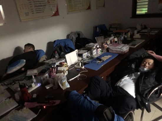 睡在辦公室的居委工作人員。小區居民供圖