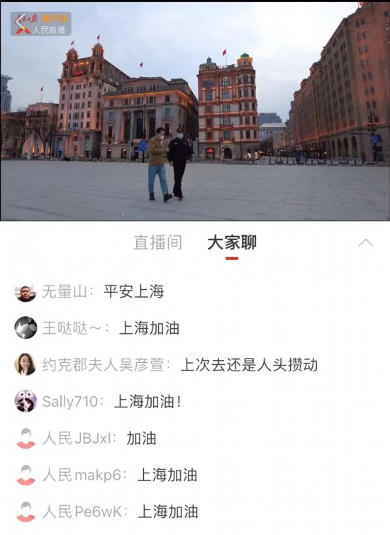 在4月2日人民日報新媒體的一場直播中,隨著記者的鏡頭掃過上海各處,評論區跳躍出一條條惦念和祝愿