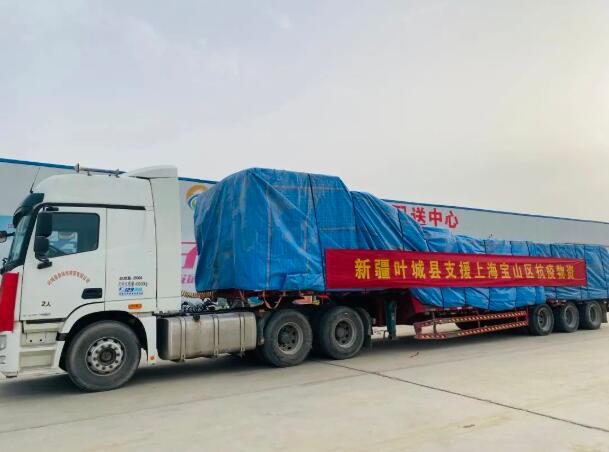 上海此輪疫情爆發以來,牽動著葉城縣各族干部干部群眾的心。在這特殊時刻,葉城縣緊急籌備價值近350余萬元防疫生活物資支援上海,分三批次11輛大車,采購相關物品,用實際行動助力抗擊疫情。其中,包括蘋果、核桃乳、紅石榴、馕、飲料、核桃等葉城特色農副產品。