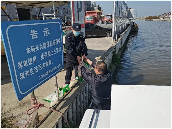 自疫情管控開始后,奉賢公安分局水上治安派出所就實行內河巡邏管控,對封閉的奉賢區域內的船舶進行靜態管理,一方面指揮被封控的船舶統一?恐两饏R港北閘南候閘區,方便統一管理,另一方面,向船民們開展防疫宣傳,督促提醒船民們及時至就近點做好核酸采集。
