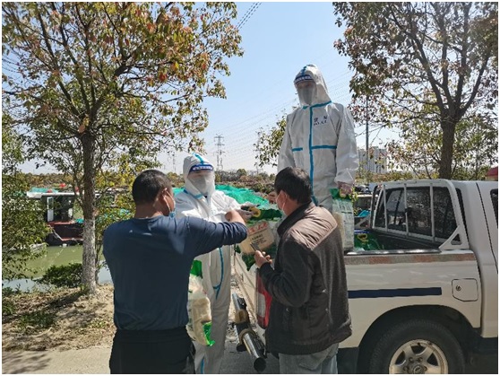 4月4日,水上治安派出所會同區交通委執法大隊在經過消殺后,將78分蔬菜大禮包和一批大米送至需要物資的船民手中。