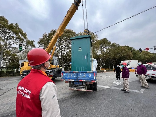 因近期疫情防控規定,車輛無法跨區通行,奉賢公司與金山公司商定在交界處附近的大亭公路與莊亭公路路口進行設備交接,并向兩區相關部門報備整個工作流程。11點20分,曹家君與金山公司搶修人員在交接點匯合,裝卸工作隨即展開。20分鐘后,金山公司搶修車輛載著這臺環網柜駛向故障現場,曹家君的派送任務歷時2個半小時最終圓滿完成。當日晚些時候,環網柜整體調換完畢,故障成功修復,周邊居民恢復供電。