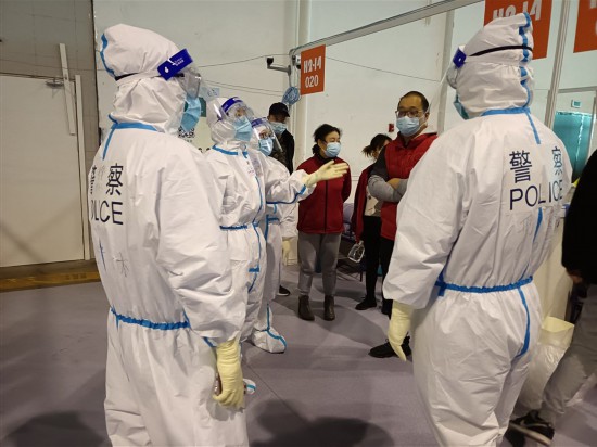 除了配合醫護人員做好勤務保障外,民警還要負責方艙醫院出入口巡查,協助進出艙患者登記、接入、送出,及時發現處置各類安全隱患。