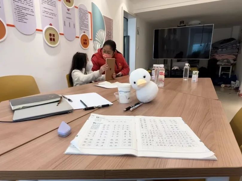 因為疫情,九妹的爺爺奶奶被隔離了。她先是在好心的鄰居朱師傅家里住了幾晚,等杜佳敏得知九妹的情況后,便立刻將她接到了自己身邊。為使她得到更好的照顧與溫馨的呵護,4月1日起,九妹就在趙園居委會開始了“新生活”,趙園居委會全體工作人員當起了九妹的“臨時監護人”。大家都把九妹當成了自己的孩子,盡管工作忙碌,還是輪流陪她一起上網課、寫作業、畫畫……將居委會工作人員的辛苦都看在眼里,九妹更是主動向杜佳敏提出了幫忙的請求——給志愿者分發物資、給來不及吃飯的工作人員送盒飯、整理提前打印的核酸登記二維碼……她在力所能及的范圍內體諒大人的辛苦,用行動默默回報大家,受到了大家的一致好評。