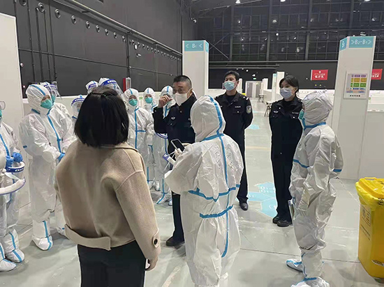 在這間偌大的方艙醫院,包括朱賡在內有3位民警、17名安保人員,他們24小時輪軸轉、由于奧密克戎病毒傳播力更強,因此管理的要求也更高。面對嚴苛的的工作標準、滿負荷的工作強度、更高感染率的工作風險,作為一支迎戰隊伍的帶頭人,朱賡更明白“頭雁”的作用。在帶領民警、保安力量工作的同時,他更是以身作則,巡邏值守,無論多累,每班朱賡堅持到崗,做好崗前布置,尤其是部署好各項個人防護措施,“我們是一個整體,我帶領大家來就要爭取帶領大家安全順利地完成任務”,即便嘮叨,朱賡還是要每次反復叮囑,做好保障,“警力,人力有限,我是指揮員更要保護好整改隊伍的戰友”。
