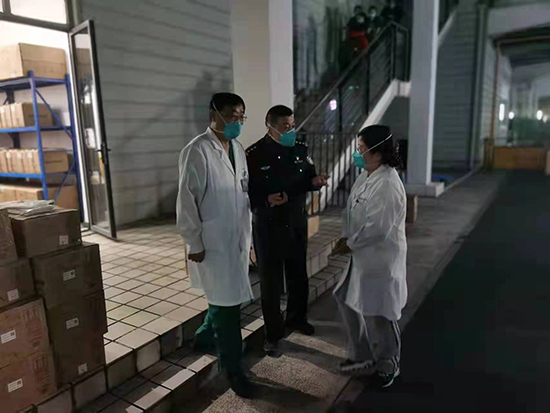 “聽黨指揮,戰勝疫情,必將迎來春暖花開”,作為一名有著近20年黨齡的老黨員,近30年警齡的公安民警,朱賡主動請纓參加轄區方艙駐地備建管理,成為該方艙公安派駐的一名指揮員。朱賡所在的方艙醫院共包含600多張隔斷床位和相關配套用房,面積近1萬平方米。4月1日進駐方艙以來,朱賡馬不停蹄地落實安全防護措施、網絡覆蓋、后勤保障、警醫對接、規范收治等各項措施等落實。