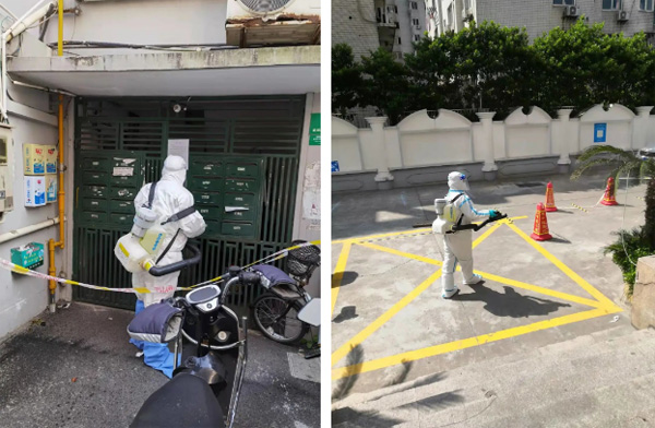 自從本輪疫情發生以來,這支消殺隊就活躍在戰疫一線。在發生疫情的小區,居民或多或少會有一些恐慌,但只要看到這支隊伍出現在小區、樓棟里,居民就安心了!拔覀5個人幾乎每天都要消殺七、八十棟樓,但其實我們做的不僅僅是消殺,還有對老百姓的心理慰藉!庇針逭f,轄區內的重點樓棟都要進行1次全面消殺。