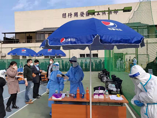 3月11日,在閔行開發區進行全員核酸檢測時,上海百事第一時間將瑩純純凈水和飲料送至現場,以力所能及的行動支援園區防疫工作。