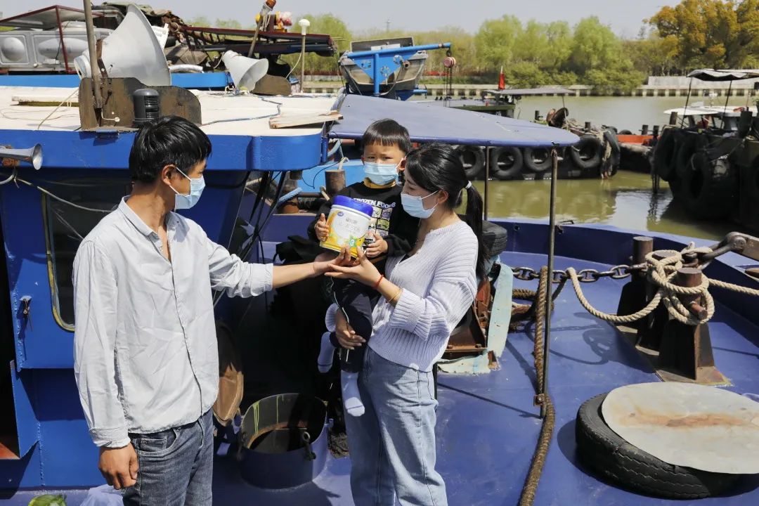 因為船只已在外漂泊多日,船上物資儲備出現缺口,特別是嬰幼兒物資緊缺,姚家村村委會了解情況后,迅速取得了聯系。