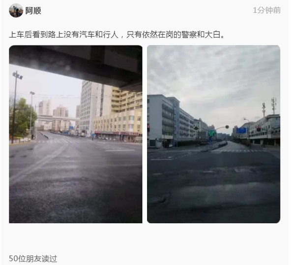 下午4點多,我接到通知要收拾好行李,轉運至方艙。上車后,我注意到路上已經變得冷冷清清,只有堅守在崗的警察、大白等!耙蛔锹聛,一群人快起來”,向這些與疫情賽跑的人致敬!