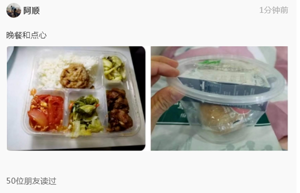 我已經慢慢適應了方艙生活。這里有一日三餐、點心,還有“戶外活動”時間。按照醫生的建議,大家都需要經常喝水、補充蛋白質、保證睡眠,這樣身體就會恢復得快。