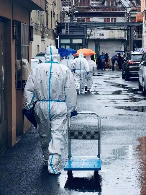 3月16日至18日兩天,北外灘街道所有住宅小區和商務樓宇將進行48小時封閉式管理,并進行網格化核酸篩查。一大早,我和同事們來到了某小區,張貼相關通知,協助醫務人員進行核酸檢測。