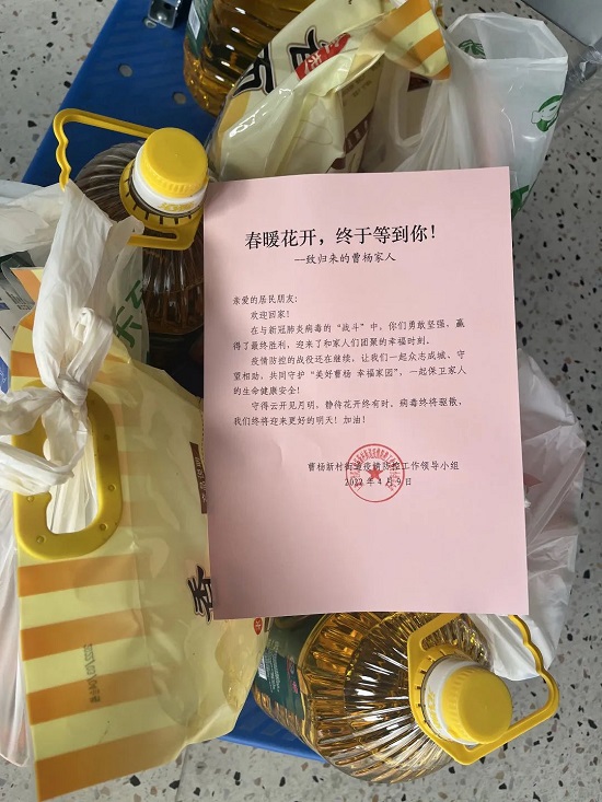 同時還收到了一封“致歸來的曹楊家人”暖心歡迎信。