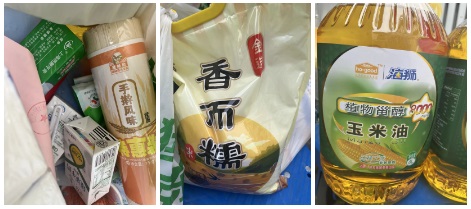 車剛剛?啃^,居民就收到了一份由街道精心準備的暖心禮包,里面裝有米、面、糧、油等生活必備物資。