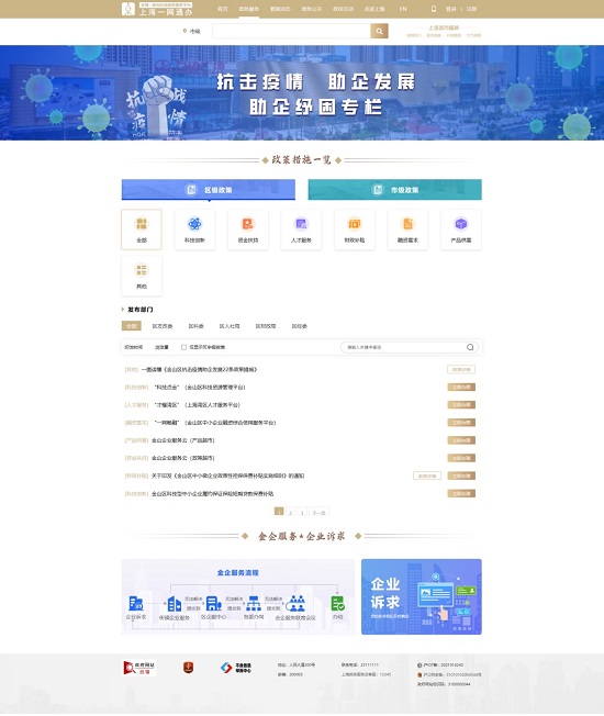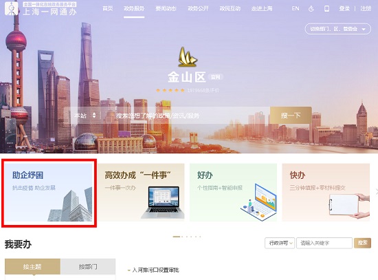 @金山企業:“一網通辦”金山頻道正式上線“助企紓困”專欄