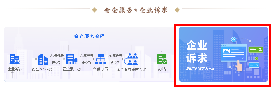 “助企紓困”專欄同時設置了“企業訴求服務”欄目,依托“金山企業服務云”的企業問題訴求處置的接受、辦理、反饋管理閉環工作機制,提供線上接收企業相關問題訴求渠道,接受企業對“助企紓困”政策措施落實執行中的相關問題訴求和意見建議。