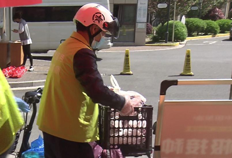 在玉麟名邸小區,前一天晚上居民們通過居委訂購的蔬菜和肉類食品今天上午已經抵達各暫存點位,陸續有居民接到通知前來取貨。除了蔬菜肉類食品,在昨天城橋鎮公布的生活物資保供指南中,還增設了米、油、調味料、衛生用品等套餐,由各村居根據各自實際情況組織集中代購和分發!靶^居民錯峰分時領取,開放式的老街小巷,我們安排每戶送上門!倍帕柙平榻B。