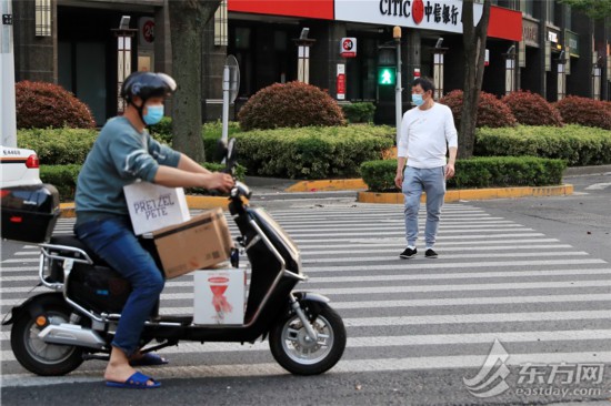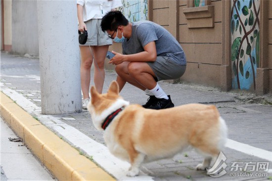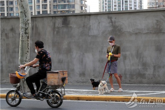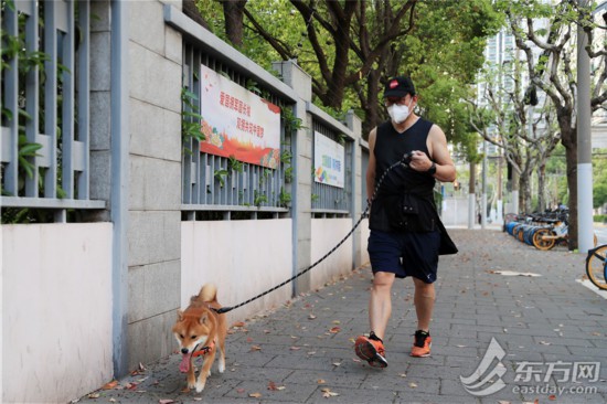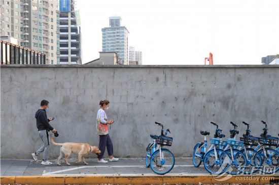 當天傍晚,靜安區公布了第一批“三區”名單。記者在江寧路街道看到,位于防范區的小區大門“解封”,居民陸續步出小區。出門的以養狗狗的鏟屎官為主,也有家長帶著孩子下樓活動的。居民們繞著小區附近的道路散一會兒步,就自覺返回小區了。附近的商超大部分都仍處在關閉狀態。