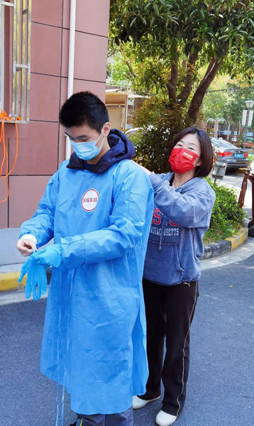 但事情總有相撞的時候。有天中午,黨員志愿者群里臨時召集大家發放抗原試劑盒,但學校有個重要的視頻會議,兩邊時間剛好重疊。這時金老師的兒子正好有空,便趕緊替了媽媽的“班”。這一替,讓兒子也萌發出做志愿者的想法。母親就像一面旗幟,讓他深諳自己作為青年黨員應擔的責任與胸懷,“媽媽既然可以一邊工作,一邊利用間隙的時間去服務,我有什么不可以?”于是金老師與兒子組成了“母子拍檔”,在保證志愿服務時間與工作不相沖的前提下,合理安排事務,高效切換“戰場”!艾F在我們倆誰有空誰就上。明天核酸檢測的話,肯定需要大量人手,所以我們母子兩個都報名參加!”