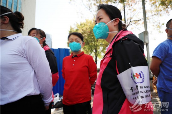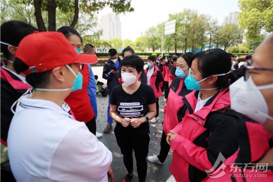 4月12日中午,當記者正要離開時,云南省援滬醫療隊剛好抵達,領隊向醫護人員們重申防護要領和工作注意事項。與新冠肺炎病毒交鋒的這場硬仗,大家都在趕時間。