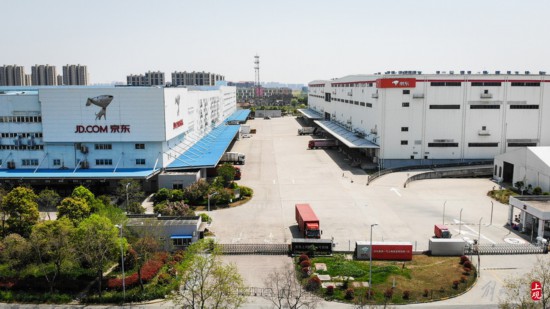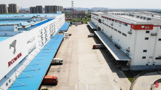 航拍位于興邦路上的京東亞洲一號上海嘉定物流園一區和二區。