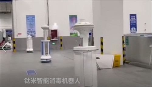 臨港方艙6號艙內共部署了15臺鈦米消殺機器人,集成超干霧化消毒液、紫外線消毒、等離子空氣過濾等多種方式,針對環境物表和空氣執行自主移動式多點高水平消毒,強化對醫護及患者的安全保障。
