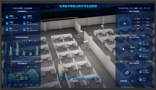 近300臺機器“小白”都有一個統一的“大腦”。上海聯通攜手疊境數字科技打造數字孿生指揮艙,通過激光SLAM建圖技術精確重建室內三維地圖,構建1:1映射的虛實融合的數字孿生基座服務,打造統一數據平臺,實現對機器人的集中管控以及艙內數據的實時監測,助力管理人員高效決策,支撐對臨港方艙的調度一體化、數據透明化的全過程高效管理。