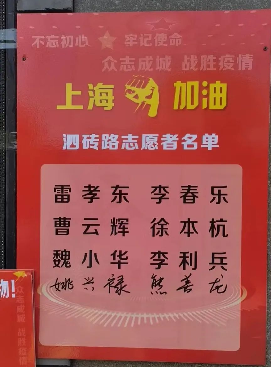 仔細看在這張溫馨告知上面還有一張紙,用俏皮的字體寫著最熱血的話:“店主去拯救世界了,火速回歸中!痹瓉磉@家店的老板雷孝東從本輪疫情伊始就自愿加入了志愿者隊伍,他說“作為一名黨員,在該站出來的時候毫不猶豫,在該發光的時候絕不吝惜。來泗涇打拼多年,我早已融入這里,這里也是我的家!痹谒膸ьI下附近很多居民和商鋪店主紛紛加入了志愿者的隊伍。