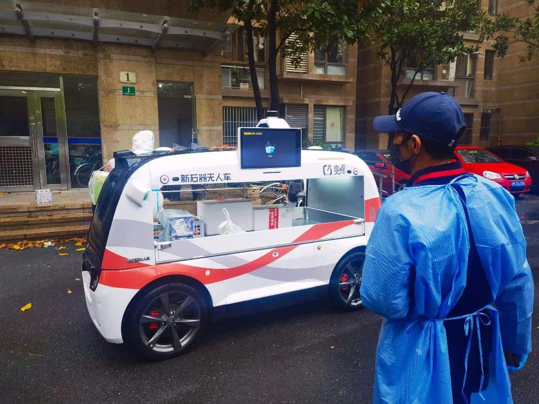 當封閉在社區的黃先生看到志愿者們每天開著“小電驢”、拉著小推車,一趟趟往返小區樓棟之間,他覺得非常心疼,“我孕期的太太受到了鄰居們的厚愛,因此自己也想通過這種方式回饋社區,一起共渡難關”。4月10日,黃先生和社區溝通得到同意后,便向公司申請借調這部無人車。新石器公司連夜將車輛從生產基地常州調來,4月13日車輛經過艱難跋涉終于到達社區。