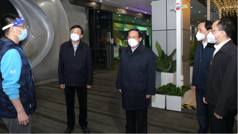 4月11日,上海市委書記李強前往部分街鎮居民區,實地檢查基本物資供應保障和封閉小區管理情況。