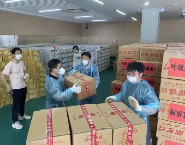 寶山葉城一家親,銘記恩情存如血。在當前上?箵粜鹿诜窝滓咔榈年P鍵時期,葉城人民發揚萬眾一心、同舟共濟、守望相助的偉大抗疫精神,與上海人民攜手共抗疫情。積極組織開展疫情防控捐贈公益活動,全縣各級黨政機關、企事業單位、社會團體及各界愛心人士紛紛伸援手、獻愛心,自發自愿捐款捐物,共克時艱、共同守“滬”。全縣各級領導干部率先垂范、帶頭捐款,上海援疆幫扶企業慷慨解囊,在全社會迅速掀起眾志成城抗擊疫情的捐助熱潮;鶎泳用袼名愔鲃拥缴鐓^捐款,并說:“上海寶山幫助我們很多,當前上海發生疫情,也牽動著我們的心,我們也要盡微薄之力,希望上海人民早日戰勝疫情”。葉城縣企業家協會會長、新疆寶隆化工新材料有限公司董事長徐延龍第一時間在企業家協會內帶頭捐款,并說:“上海援疆這些年對葉城縣產業幫扶和企業服務力度很大,我們都是上海援疆的受益者,F在上海有疫情,我們理應盡一份力”。截止目前,葉城縣已向上海援助生活、醫療物資和捐款等共計近368.5萬元,其中有31372件農副食品、13200件飲料、114.04噸蘋果、10萬個口罩等價值286.8萬元的物資,以及捐給上海市寶山區紅十字會的81.7萬元捐款。