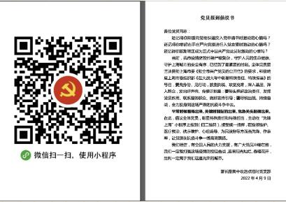 目前,支部已在“先鋒上!鄙仙暾埡门R時黨支部二維碼,同時在收治點內張貼了《黨員報到倡議書》和二維碼,積極引導患者黨員主動報到,為身邊患者提供幫助和服務,努力形成患者自我管理、自我服務的良好氛圍。