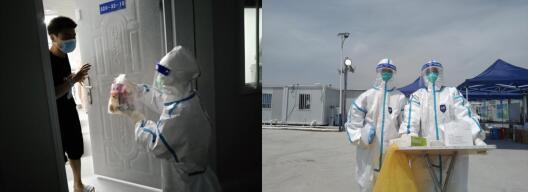 “她是第一批‘入艙’的人員,剛來的時候什么行李都沒帶,問她也不回答,眼神里充滿了極強的敵意,通過觀察和查閱病史,我們確定這是一位精神障礙患者!弊o士陳憶筠表示,在她的醫護經歷中,這是頭一次接觸此類對象,彼時還要忙著收治其他患者,只好讓身邊的特!按蟀住眰兿确住她。一小時后,護士們再次嘗試溝通,對方仍然答非所問,拒絕飲食,甚至有搶奪辦公用品、撕咬、打砸等應激行為!拔覀円獙λ撠,更要對這里其他人員的安全負責”——張麗娜等多位醫生通過深入了解病史和聯絡會診后,決定安排4個班次,每班專人24小時貼身照看患者,同時聯系精神衛生機構,為其開具藥物緩解癥狀。期間,醫務團隊不斷嘗試著各種方法:傾聽、播放舒緩的輕音樂,直到她疲倦睡去.....三天后,當即將前往定點醫院臨行前,這位患者竟有一瞬間向醫護團隊揮手致意,當天當班的張喆、姜天星等幾位護士隨即向其作出了比心手勢。病毒暫時阻隔人們肢體的接觸,卻切斷不了人與人的情意連結。