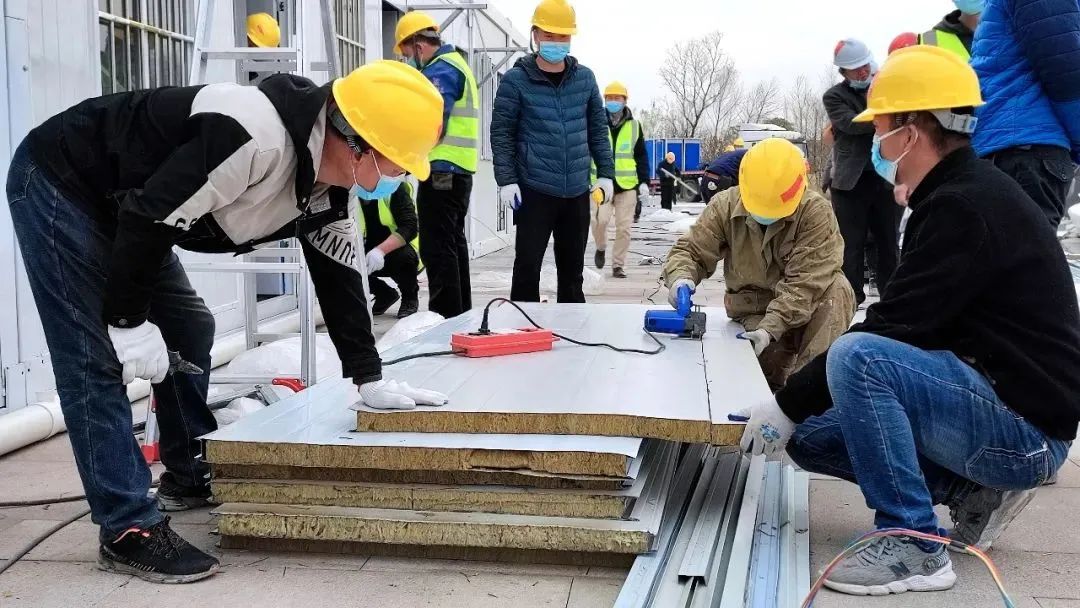 在完成原定的任務后,援建團隊又接到臨時支援三個新增集裝箱體的改建任務。在團隊人員稍作休整后,大家繼續咬牙堅持,在連續奮戰54小時后,圓滿完成各項援建任務。