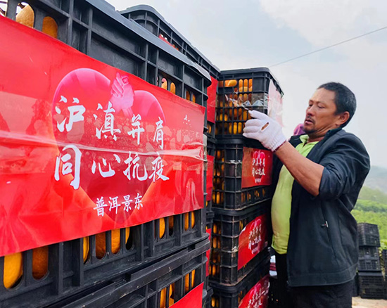 為助力上?箵粢咔,云南省普洱市景東縣委、縣政府積極籌劃,組織當地村民加急采摘20余噸價值約70萬元的新鮮水果馳援金山。