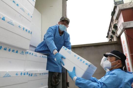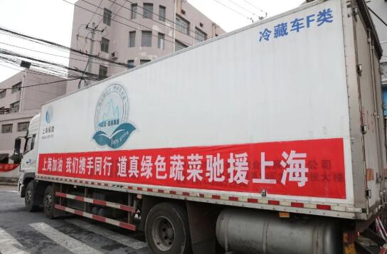 當天上午9點,七輛滿載新鮮蔬菜的冷鏈運輸貨車,準時抵達楊浦區廣德路物資接收點。道真興農集團副總經理樊川介紹,七輛冷鏈運輸貨車運送的全是新鮮蔬菜,包括香菇、杏鮑菇、土豆和萵筍。道真距離上海2000多公里,連續開了48小時,才順利抵達上海。