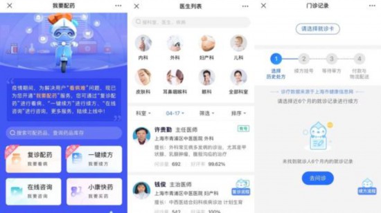 如果市民急需某種藥品,可在最上方的搜索框里查詢該藥品,并根據是否有庫存來決定是否繼續就診。如果患者需要先復診病情再配藥,可點擊“復診配藥”,在醫生列表中尋找對應科室的醫生,填入您此前的就診信息,即可預約在線就診。如果是普通慢性病配藥,還可點擊更方便的“一鍵續方”,綁定自己的社保、醫保就診卡后,系統即會提供該賬戶下近6個月的就診記錄,患者可選擇歷史處方續方。