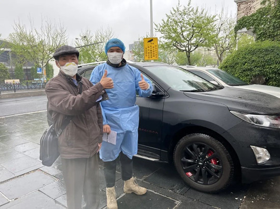東旺公寓里有一戶老夫妻,老伯需要定期血透。封控期間,他只能乘坐居委干部的電瓶車來去醫院,但由于路途顛簸,老人每次都感覺暈車惡心,讓本就虛弱的身體更不堪重負。黃驊得知他們的處境后深感同情,二話不說與居委會聯絡,開具通行證,將自己的私家車當做“120”,成為了老人的“專車司機”。
