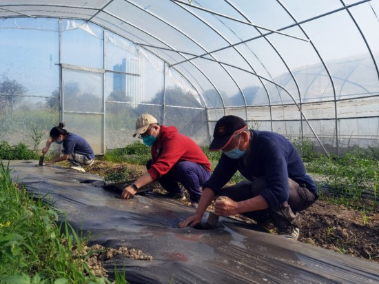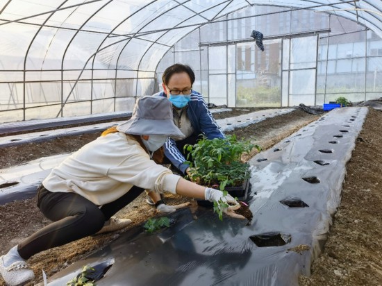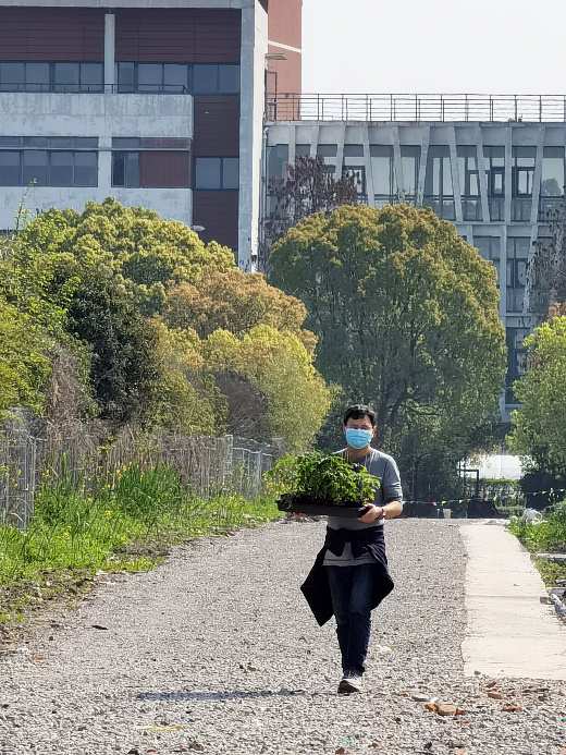 為了不耽誤農時,在學院黨委書記侯士兵老師帶領下,留校教師紛紛出謀劃策,貢獻課題組前期培育的科研用苗。除了將幼苗直接送到學生宿舍進行小范圍種植外,這些園藝大咖還主動參與了勞動教育基地的定植,為大一學生耕讀勞動教育的后續開展做好準備。