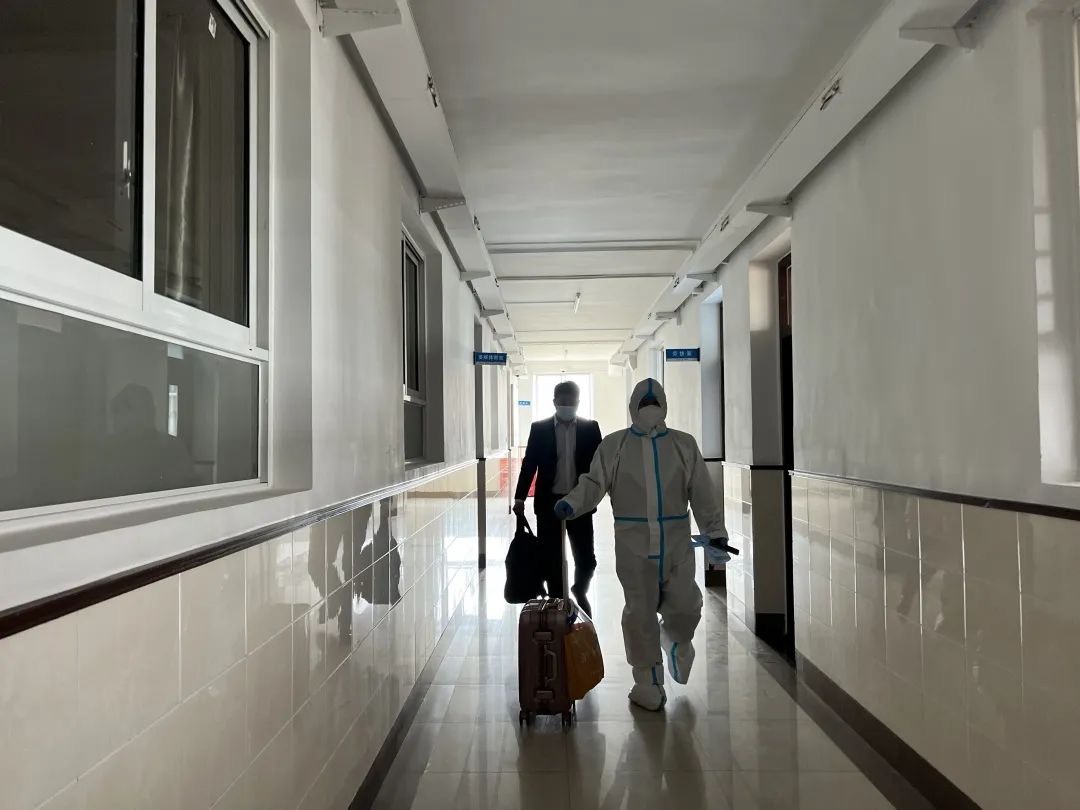 防疫措施必不可少。顧洪飛靠著車窗反光鏡,整理了下儀容儀表。沒幾分鐘,就有工作人員來指導他進行抗原檢測,拿到陰性結果后,顧洪飛立馬穿戴防護隔離服,整個過程只花費了10分鐘。雖然第一次穿上防護服,但顧洪飛沒有好奇,更多的是責任和使命感。