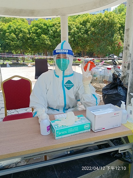 3月以來,上海疫情防控形勢嚴峻。來自同濟大學附屬東方醫院的護士姜蕾蕾在完成科室內本職工作外,還積極報名參與醫院組織的外出采核工作。從4月3日開始,她便駐扎在浦東陸家嘴街道,負責各社區的核酸大篩查與掃樓任務。已半個多月沒有回自己的浦東小家陪陪丈夫與孩子的她,更別提回老家江蘇探望家人朋友們了。