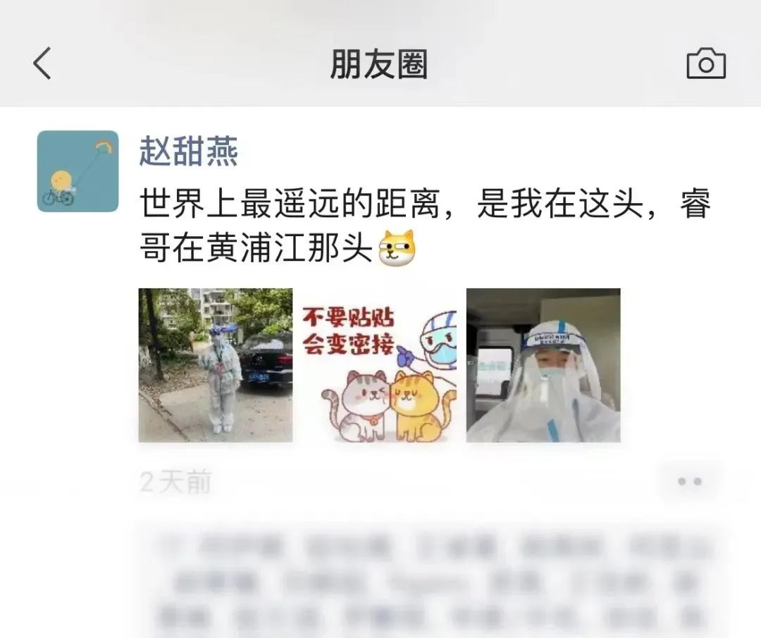 浦西地區進入封控管理后,趙甜燕的一則微信朋友圈引來大家的點贊。原來,身為警察的丈夫因為參加防疫工作,已近一個月無法回家,此時此刻正在浦江對岸執勤。他們通過微信隔江守望,相互鼓勵、齊心戰疫的畫面,讓不少同事看到后紛紛點贊:“雙向奔赴最浪漫!”