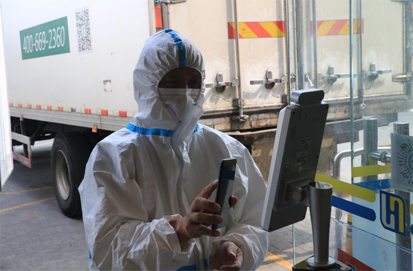 作為疫情防控物資保供企業,聯華超市東門店每天都要承接大量物資往來。門口新設置的“數字哨兵”系統,便成為繁忙保供工作的堅實防線。無論是店員、物流工作者還是前來取貨的志愿者,在進門之前,都必須經過“數字哨兵”的“檢查”。