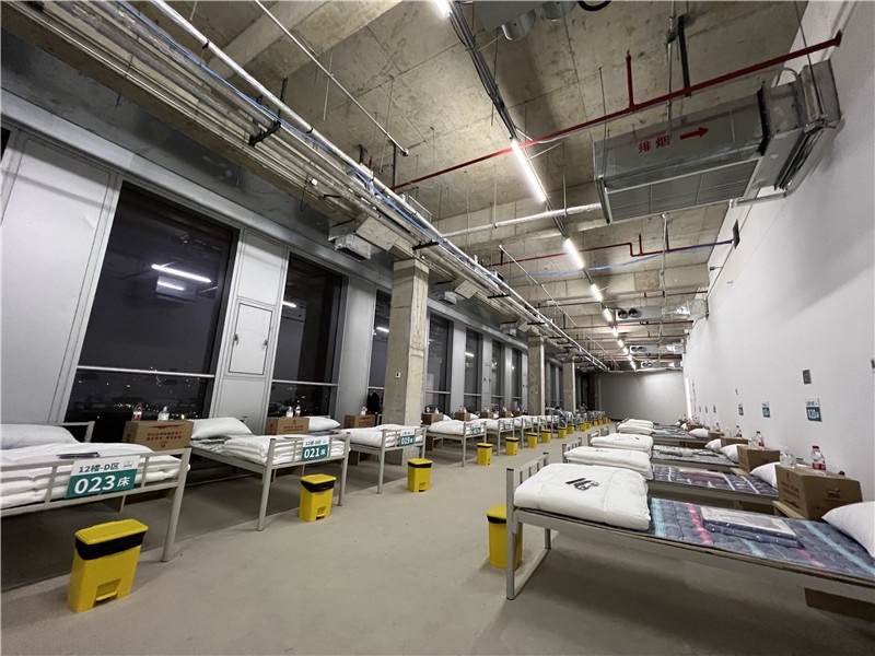 下午1點出頭,我們一家三口開始轉運,在中轉站短暫停留后,換了輛大巴繼續轉運,路上接了一些陽性病例,兜兜轉轉直到5點,到了方艙隔離點,周圍春意盎然——打開地圖搜索,發現距離我家僅9.6公里,聽司機大白介紹,這是浦東疾控剛增設的。
