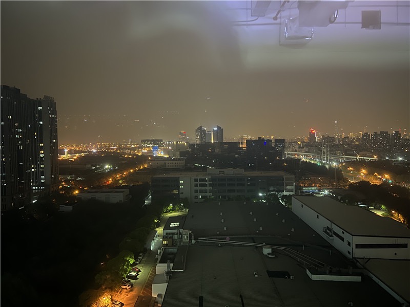 18:45,一切收拾妥當,晚飯來了。小藍的小推車上整齊堆滿了盒飯,大家排著隊有序拿飯,沒有爭搶,沒有喧嘩。吃著飯,眺望窗外,上!叭住北M收眼底,這是封控25天以來,足不出戶的我們,第一次看到如此璀璨的夜上海。
