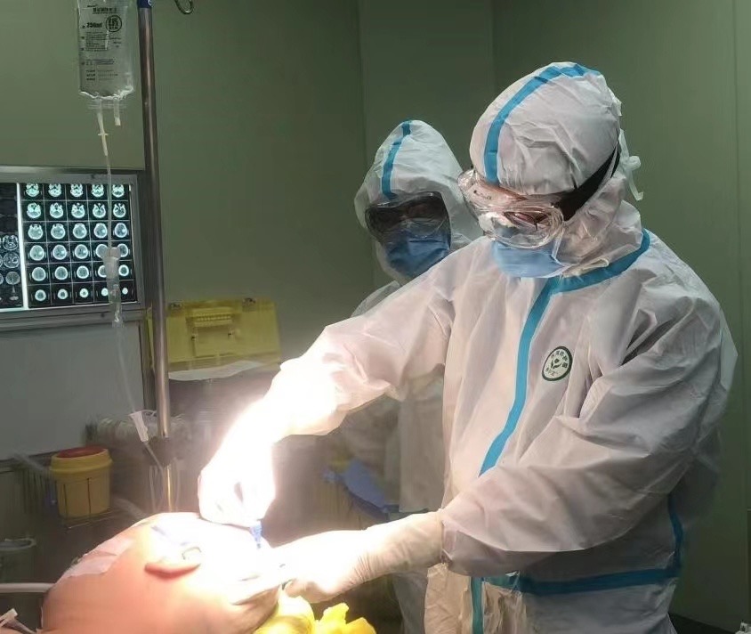 參與手術的醫生將三臺手術一一“復盤”,結合此前華山醫院寶山院區新冠救治定點醫院、虹橋院區高風險負壓神經外科手術相關工作經驗,就特殊時期手術流程、經驗一一總結、梳理。華山醫院院長、神經外科常務副主任毛穎教授也在群里為團隊點贊。
