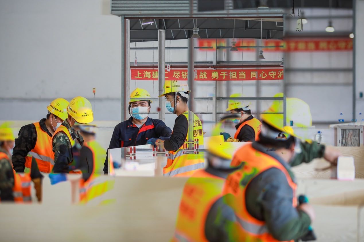 在崇明花博園區,2500多名上海建工人爭分奪秒,正在建設超6000套臨時隔離用房,最快將于4月22日逐步投入使用……