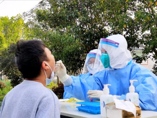 人民網上海4月21日電(韓慶) 4月20日,奉賢區全員核酸檢測第六天。在派往鄔橋社區外采的隊伍中,奉賢區古華醫院領隊發現了在老年內科三病區閉環管理的洪梅醫生,原來她剛結束駐守任務,換班的第一天就參加了外采隊伍。