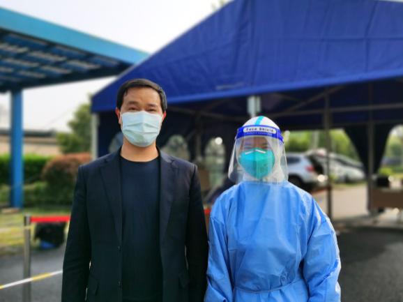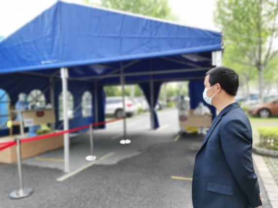 李忠是洪梅醫生的愛人,奉賢區區會議中心管理科副科長,負責區防疫指揮部、工作專班硬件設備正常運行及大院安保工作。在3月28日封城前夕,他帶隊駐守會議中心至今,每次點位核酸檢測,他都會在一線指揮,按時分段控場,做好人員銜接和突發狀況處置。